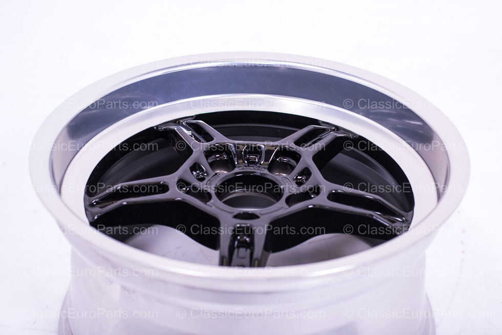 An set of original M system II wheels for E34 M5 / E31 / E32. The wheels are painted gloss black and the lips are polished and clear coated. Set consists of 4 wheels.