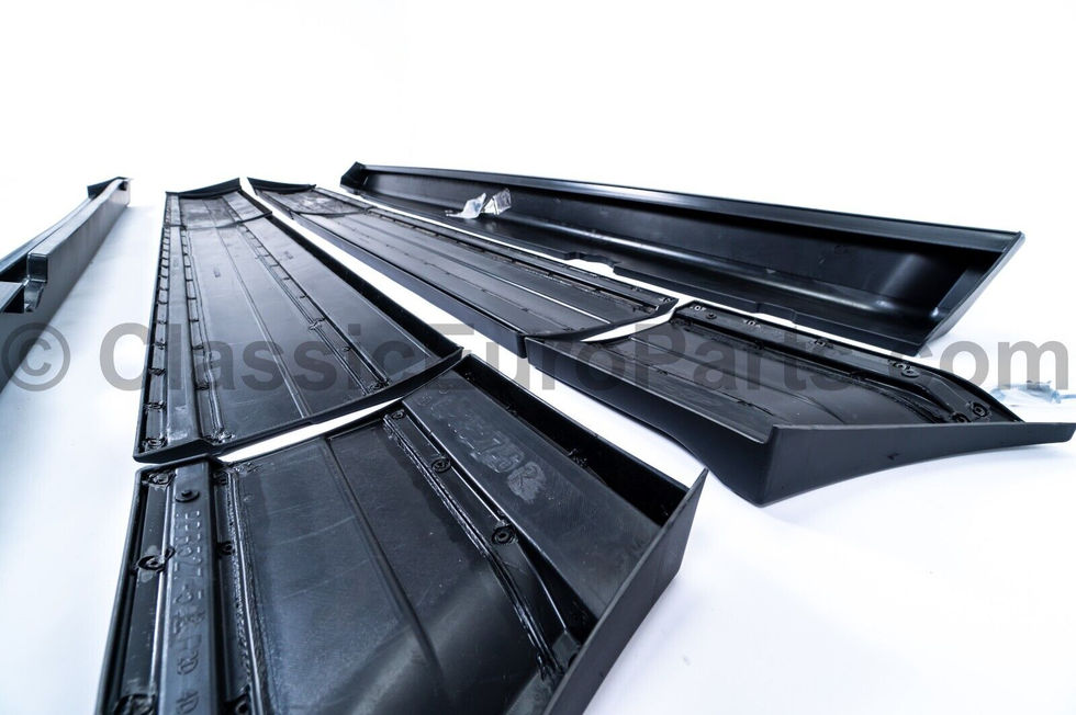 A full set of both sideskirts and door pods for E30 Late model sedan / touring Mtech2 body kit. These parts make the car appear wider and sleeker. Made from black plastic.