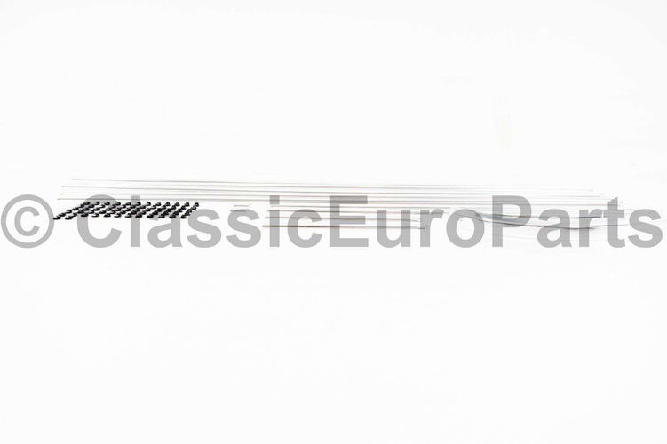 Chrome molding set with fitting clips for Transporter T2 Bay (August 1971 – July 1979). Set includes: 13 trim pieces and mounting clip set. Please see last picture for illustrational purposes. Complete your car restoration project or replace damaged trims with this brand-new body molding set. Designed to provide a sleek and polished finish, it’s the perfect final touch for essential visual appeal you’ve been looking for! These are brand new aftermarket parts. Mounting: Same as original – clip on. Fits: VW Transporter T2 Bay (August 1971 – July 1979) If you need other parts for your classic VW – feel free to ask as I do have a huge selection of parts for vintage VW cars available.