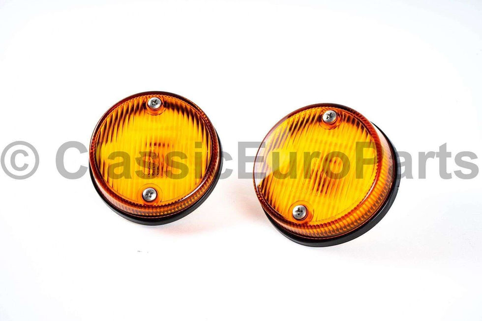 Euro Italian / Danish / Japan market specific turn indicator (sidemarker) set (Left and Right) for Porsche 914. These are the ones located on the side of front fenders. Will also be great for USA spec cars when doing a Euro conversion as these have the Euro fluted texture opposed to the US spec honeycomb texture. Please see the last picture for illustrational purposes. These are brand new aftermarket parts. Done in good quality. Made in Europe. Mounting: These are mounted to the cars body using 2 screws each. Will also fit USA spec cars Fits: 914 (1969-1976) US and Euro cars I do also offer these turn indicator / sidemarker lights in USA model form and also in clear and smoked finishes. If you need any other body or mechanical or interior part for your vintage Porsche- please ask as I do have a huge stock of parts that are not yet listed.