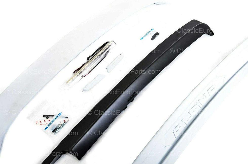 Full body kit for E36 Alpina cars. This is only for sedan / coupe / convertible without M3 bumpers. Kit includes: Front spoiler with mounting hardware for cars with standard bumper with the removable front grill (from September 1993 year). Boot spoiler with 3rd brake light and installation hardware. Rear bumper diffuser for double tip exhaust (325i / 328i)- this will also fit single exhaust tip cars but leave some free space (316i / 318i / 320i / 323i) These are brand new Original Alpina parts made from plastic. Please do not compare to other cheap aftermarket non original parts. Mounting: The front spoiler is fitted using some bolts and nuts and double sided tape. The boot spoiler is fitted using 4 bolts. The diffuser is secured to the bumper with clips and 2 screws- the same as standard diffuser. Fits: E36 (1993-1998) with standard bumpers. All body types except Compact and Touring. This is considered as an “oversized” package and therefore in most cases it will be shipped from Europe with Fedex / TNT / DPD / EPG freight courier services as standard- the courier freight cost is already included in the price. The courier freight makes up a big portion of the total price. If you need any other genuine Alpina part- please ask.