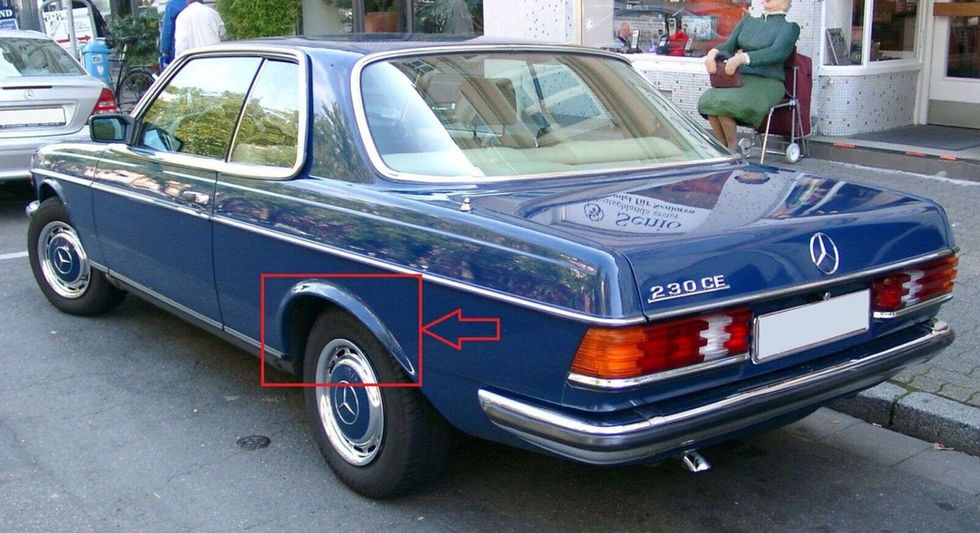 Rear quarter panel / wheel arch repair panel for Mercedes W123 C123 coupe. Price is for Left side repair panel. This repair panel is made of sheet metal and need to be welded in. It comes zinc coated or primed depending on the batch of manufacturing. Please see the last picture for illustrational purposes. This is a brand new aftermarket part. Mounting: Need to be welded to the body. It is recommended to only replace the damaged sections of the metal and cut these repair panels smaller to fit. Fits: Any C123 (1977-1985) only coupe. If you need any other part for your Mercedes W123- please ask.