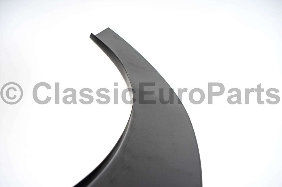 Rear wheel arch repair panel set for VW Karmann Ghia T14 (August 1971- July 1974). Set includes 2 pieces- left and right side. Please see the last picture for illustrational purposes. These are brand new good quality aftermarket parts made from sheet metal. These come in primer. Mounting: These need to be welded to the cars body. It is always recommended to cut these smaller and only replace the damaged metal sections. Fits: Karmann Ghia T14 (August 1971- July 1974) If you need any other part for your VW- please ask or visit our new shop www.classicjpparts.com as I do have a huge selection of parts for vintage cars available.