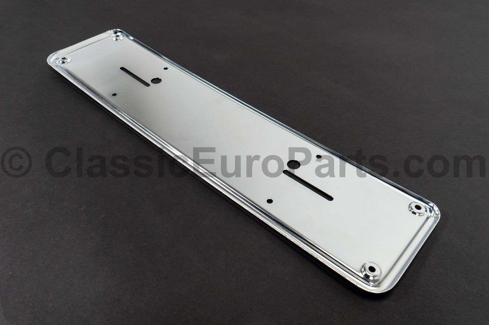 Euro spec rear chrome license plate frame / holder for all vintage Mercedes cars. Made from metal. Some other sellers tend to sell frames that are made from chromed plastic This is brand new Original Mercedes part. Made in Germany. Mounting: This frame is mounted to the bumper using 2 screws. Fits: Any Mercedes car If you need any other part for your MB- please ask.