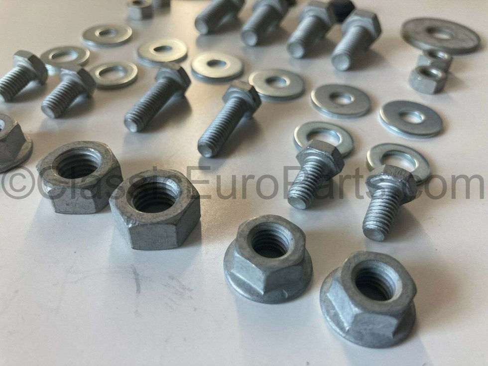 Euro rear chrome bumper mounting hardware kit for S123 touring. These are needed for Euro conversion or just to replace your old ones. These are brand new Original high quality Mercedes and aftermarket parts Mounting: These are used to assemble and mount the Euro bumper to the car. Fits: Any W123 (1977-1986) Touring only. If you need any other part for your W123- please ask. If you need any other original part for your W123- just ask
