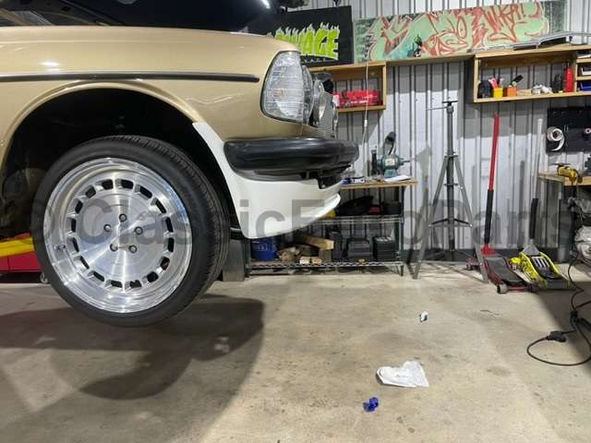 Front spoiler lip for Mercedes W123 AMG cars. This is for all body types. Please see the last pictures of the exact part test fitted. Please see the last picture for illustrational purposes.This is a brand new aftermarket part made from Plastiflex (mix of multiple composite materials- carbon; kevlar and elastic resin). As this is an replacement part professional paint prep and install (some sanding, priming, filling) is always needed Mounting: This is mounted to the front fenders with a few small self tapping screws. Very easy to install. You can also check out the install video by our partners at Salvage to Savage here: https://www.youtube.com/watch?v=Z1k3uwiEjVA&ab_channel=SalvagetoSavage Fits: Any W123 (1976-1986) Sedan / Touring / Coupe If you need any other part for your W123- please ask.