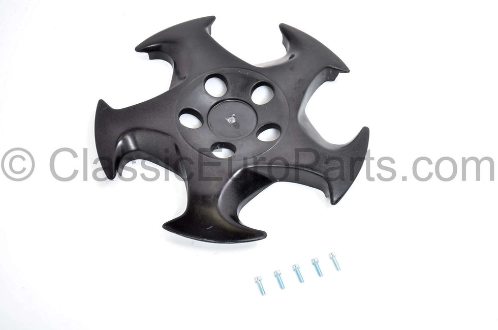An single piece (1 pcs) replacement throwing star cover for E31 and E34 Style 21 wheels- left side ( LHD cars drivers side). Please see the pictures of this cover installed on an brand new spare wheel for illustrational purposes. This is an replacement part made in one piece design- not like the originals with removable plastic center cap. This does not include the BMW logo sticker- the badge can be purchased in our shop separately. Click here to view the wheel center badge Replaces original part number: 36112227007 – left side Please ask if you need the left side as we do also have them. Only the cover is for sale- the wheel or tire is NOT for sale. This is an brand new aftermarket part. As this is an replacement part professional paint prep and install (some sanding, priming, filling) is needed. Mounting: Easy mounting using 5 included bolts just like the factory ones. Fits: Any 17” Style 20 and style 21 wheel