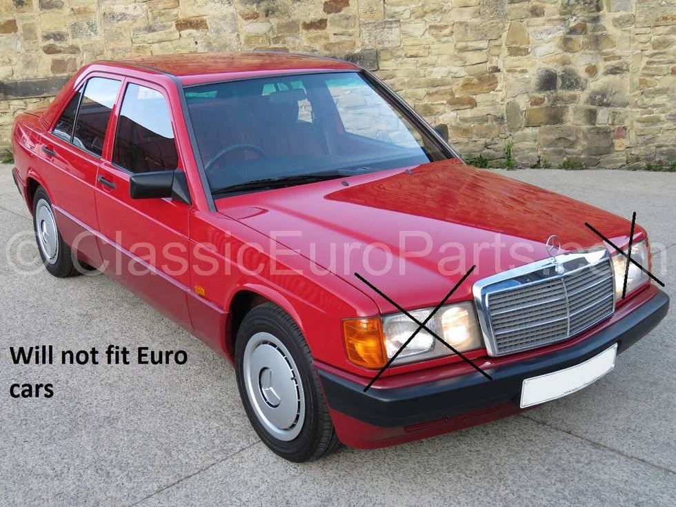 RHD Sealed beam to Euro H4 headlight insert conversion kit for US spec W201 Early model cars (1982-1986). Will NOT fit Euro headlights and Late model US spec headlights (1987-1993)- see the two last pictures for reference. This kit is for RHD cars. The kit includes left and right side headlight inserts (E approved); H4 bulbs (Hella); city light bulb holders and bulbs (Hella); 2 rubber sealing caps. These lights will provide approx two times better lighting performance and whiter color light compared to the DOT sealed beam headlights and allow for you to change the bulb if needed. These have the Euro spec light pattern with sharp cutoff. Also these lights allow you to use Euro spec city light feature if needed (includes the small bulbs and bulb holders). These are brand new good quality Hella parts. All of the bulbs are genuine quality Hella items. Mounting: These are secured to the standard US headlight bucket using the securing frame and 4 small screws as originally- very easy to replace. The US spec sealed beam plug does not need to be changed as it fits these lights- plug and play. Additionally you can choose to use the Euro city lights (included)- small wiring and headlight bucket modification (slight trimming of the bucket rear side with an Dremel tool) is needed to do this. If you do not want to use the city lights- you can just take out the city light bulb holder and close the opening with transparent tape. Fits: W201 Early model (1992 – 1986) US spec cars only.Will NOT fit Euro cars and US cars made after 1986- see the last 2 pictures. Delivery: This kit is shipped with FedEx / TNT Express free of any additional cost- you will get the parts faster compared to regular post service.
