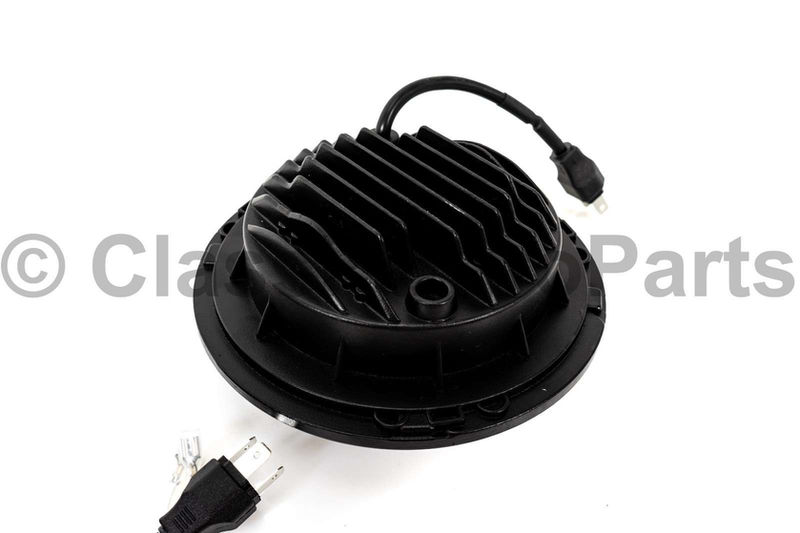 Sealed beam to LED headlight insert conversion kit for US spec Porsche 911 / 912 F model SWB 1965-1969 years. This kit is for LHD cars. This is only for the US spec cars that are all equipped with the “clear lens” and “sugar scoop” headlights- please see the pictures. Will NOT fit Euro headlights with fluted lens. The kit includes left and right side headlight inserts. These lights will provide approx two times better lighting performance and whiter color light compared to the DOT sealed beam headlights. These are brand new good quality aftermarket parts. Mounting: These are secured to the standard US headlight bucket using the securing ring and 3 small screws as originally- very easy to replace. The US spec sealed beam plug does not need to be changed as it fits these lights- plug and play. Basically as easy as swapping out a burnt out sealed beam insert. Fits: 911 F model SWB (1965 – 1969 US spec cars only. Will NOT fit Euro cars- see the last picture. If you need any other part for your vintage Porsche – please ask.